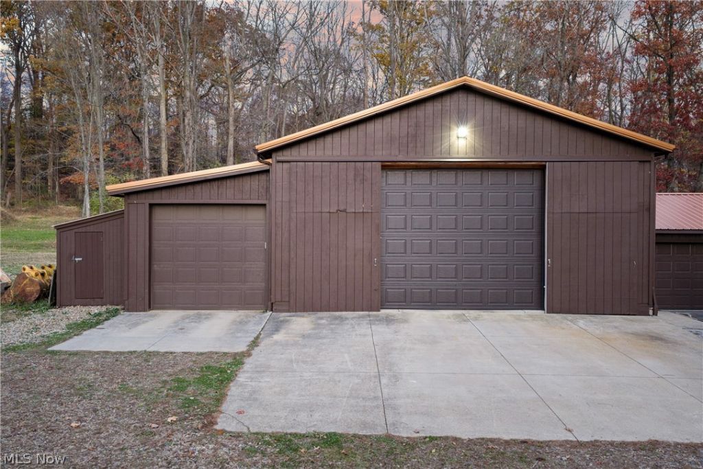 Welcome to peaceful country living on 27 scenic acres featuring stunning pond views and magnificent sunsets that feel straight out of a painting. This exceptionally built all-brick ranch offers quality construction, spacious living areas, and beautiful views from nearly every room. The home includes a fully finished walk-out lower level with private entrance, ideal for multi-generational living, guests, or flexible living arrangements. The property also features two large outbuildings providing ample space for hobbies, storage, equipment, or business use. A second home on the property offers additional possibilities including rental income, guest accommodations, or extended family living. Enjoy privacy and wide-open space while remaining conveniently located less than 30 minutes from Cleveland, Akron, and Canton, offering easy access to shopping, dining, and major highways.